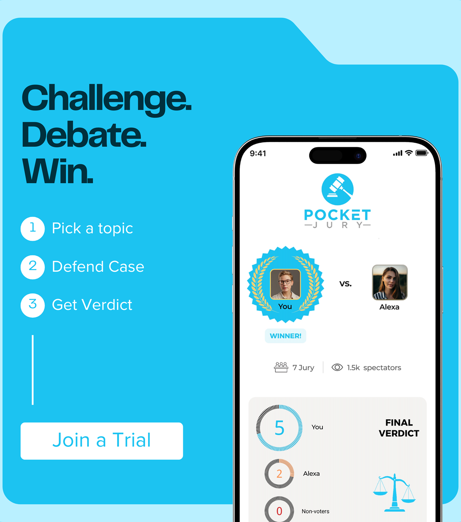 Pocket Jury is an interactive courtroom simulation platform that transforms legal-style debates into a fast-paced, social experience. Designed as a mobile-first, role-based application, the platform allows users to participate in mock trials on everyday and humorous topics. Players can assume the roles of plaintiff, defendant, jury member, or spectator—bringing courtroom drama into the realm of casual entertainment.